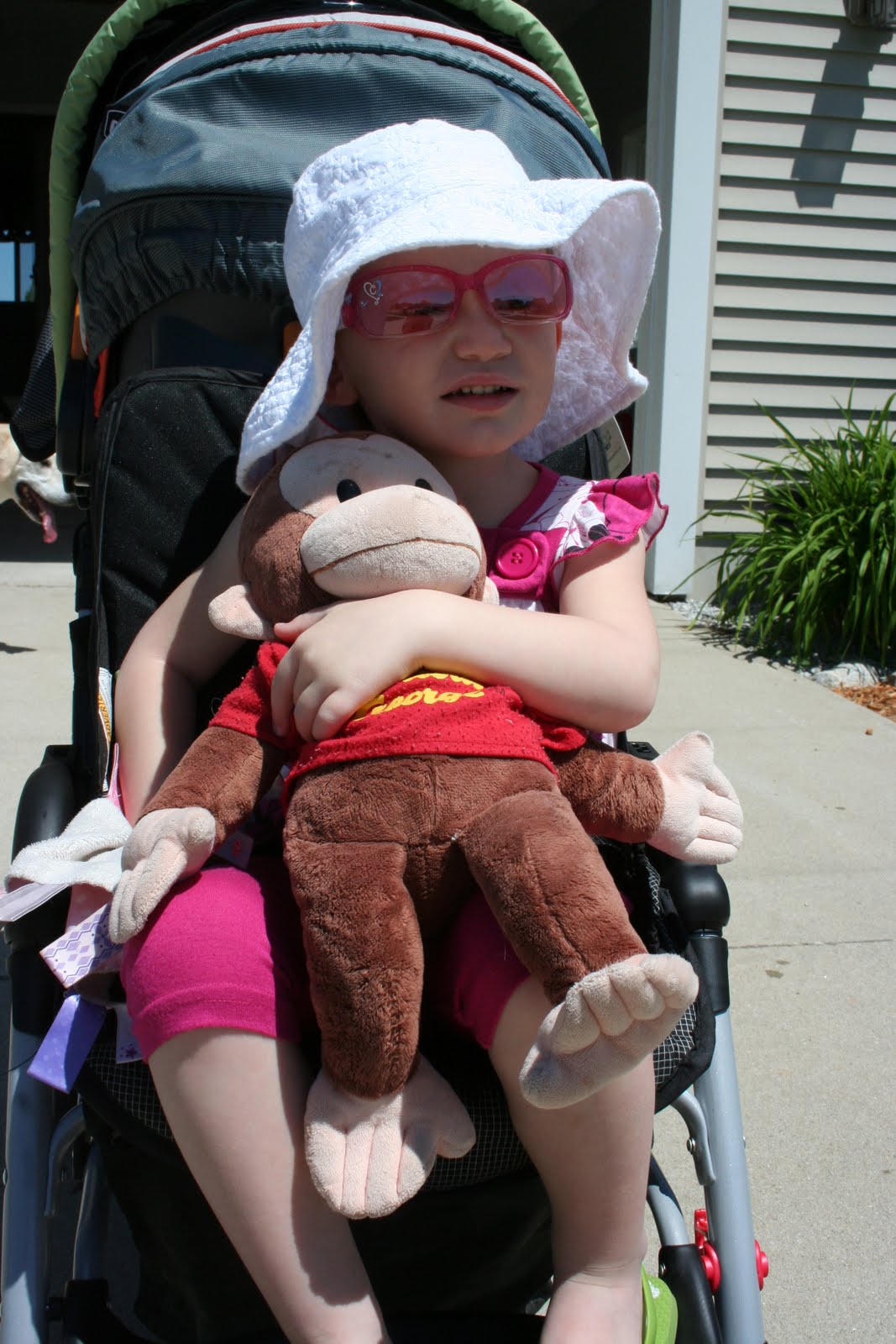 I got Karissa's pool out for her seeing it had been so warm outside. Of course I filled it with the hose and figured I would let it warm up that afternoon. Well Karissa didn't want to let it warm up she jumped right in and loved it! Buddie also like it because it's a giant water dish! Olivia wasn't quite as thrilled with wearing we swim suit, oh well.